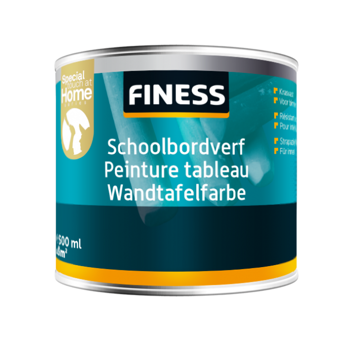 Special unlimited washable wall paint which you can write on with chalk. Create a blackboard of every wall or door! Make a magnetic blackboard by combining this paint with Finess magnetic paint. For interior usage.