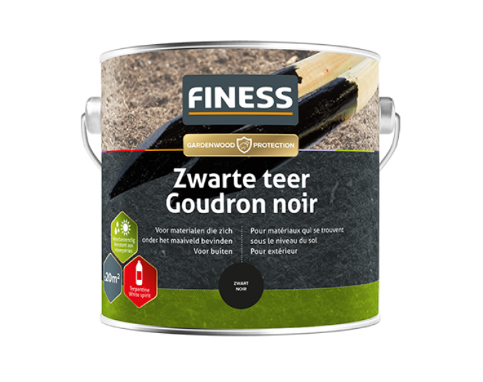 aux matériaux qui se trouvent sous le niveau du sol. Applicable sur du bois déjà traité au carbolineum, sur du fer traité au Vernis noir et sur du béton traité au goudron de houille. Le goudron noir n’est pas toxique après séchage. Le Goudron noir n’est pas recouvrable avec de la peinture. Pour extérieur.